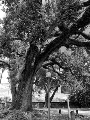 Boyington declared from the gallows, “I am innocent! I am innocent! But what can I do? When I am buried an oak tree with a hundred roots will grow out of my grave to prove my innocence!” Boyington eventually breathed his last breathe and was buried off Bayou Ave in Downtown Mobile where today, as he promised, the Boyington Oak still stands.